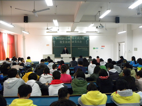 为加强大学生素质教育,进一步提高大学生的诚信、文明意识和道德水平,11月6日下午,财经学院在新知楼B401召开了“诚信·文明”主题教育活动动员大会。2013级各班班干、学生会相关部门和记者团主要学生干部参加了大会。会议由党总支秘书、团总支书记韦乃学主持。党总支副书记王振其出席了大会。