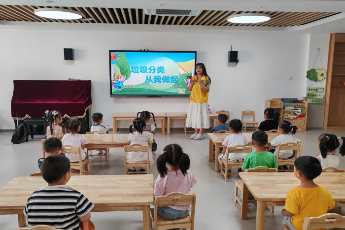 活动过程中,青年大学生们通过开展垃圾分类小讲堂,为小朋友们讲解垃圾分类知识、垃圾分类的好处及可回收垃圾如何处置等;通过趣味问答互动,引导小朋友积极思考并回答垃圾分类知识,加深小朋友们垃圾分类的认知,培养他们从小就养成垃圾分类投放的好习惯,努力争做环保小卫士。