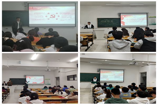 10月10日至10月27日,胡家伟、李治云和朱邦旭三位学生党员作为第一专题的主讲人,在学院各年级各班级中全面开展了第一专题的宣讲,以实际行动彰显青年担当。第一讲的宣讲主题是“中国共产党党史”,宣讲团的三位同学,分别从“开天辟地”“改天换地”“翻天覆地”“惊天动地”四个方面,以丰富的史实和典型的事例向同学们生动地介绍了党的辉煌百年和宝贵经验,引导同学们知史爱党、知史爱国,心怀“国之大者”,牢记“行胜于言”,努力做到学思悟三位一体共同发展,成为堪当民族复兴重任的时代新人,让青春在奋斗中绽放绚丽之花。
