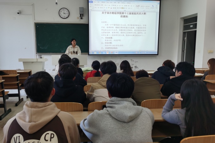 为体现班级凝聚力,团队协作能力以及提高各班级积极向上的精神面貌。10月30日,财经学院在致知楼C208召开第十三届班级风采大赛动员会。23级全体班长、团支书、文艺委员参加会议,学院纪委副书记、团委书记薛枫出席会议,会议由学生会负责人祖蓓蓓主持。