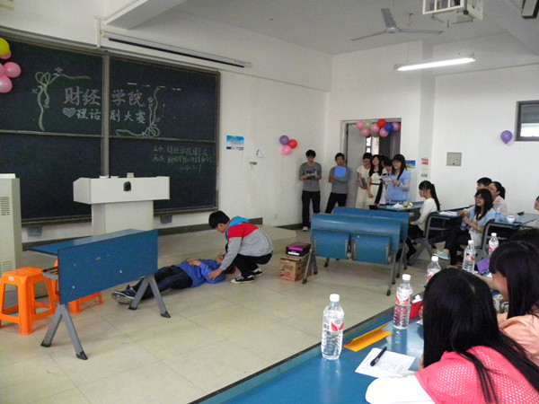 5月7日下午,由财经学院团总支主办、财经学院心理委员联合会承办的首届心理剧大赛在新A306举行。动科院心保部部长胡琴、数理学院心联会长蒋乐乐、财经学院学生会宣传部部长李梦洋、心联会长王阿杰、副会长廖海媚担任此次比赛的评委。辅导员薛枫现场组织、全程指导比赛。