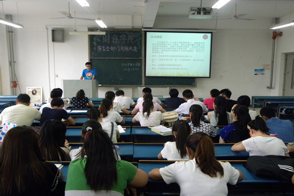 为了更好地提高财经学院学生会的工作能力,及时总结经验,发现不足,6月10日下午,财经学院在新知楼A108教室召开了学生会各部门工作总结交流暨考核大会。大会由分团委书记薛枫主持。院社联主席团成员和13、14级各班班长担任评审。