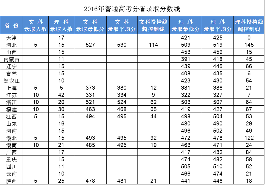2016年普通高考分省录取分数线