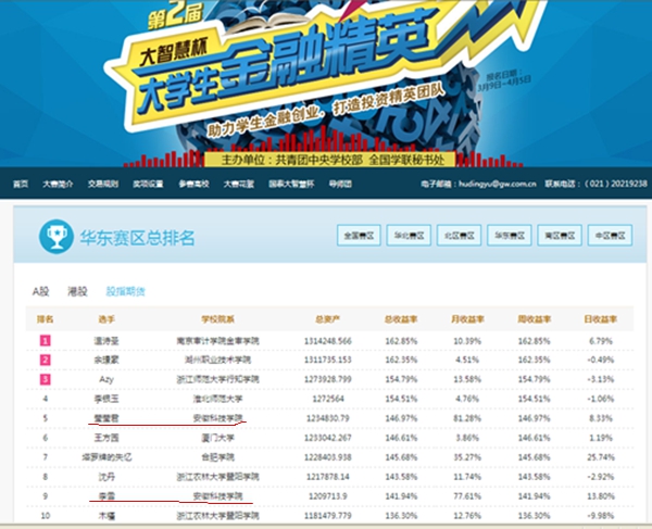 近日,由共青团中央、全国学联主办的为期七周的第二届“大智慧杯”大学生金融精英挑战赛落下帷幕。财经学院章莹莹、李根秀2名学生不负众望,荣获全国一等奖。财经学院邢丽娟、谢苗、陈雨晴3名学生荣获全国二等奖。