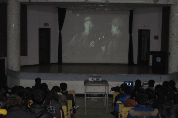 影片中,雷锋用自己的实际行动诠释了“怎样做人,为谁活着”,表达了忠于党、忠于人民、忠于祖国、忠于社会主义的爱国之情;以“钉子”精神刻苦学习毛泽东著作和科学文化知识,不断提高为人民服务的本领;以甘当“螺丝钉”的精神,干一行、爱一行、钻一行, 雷锋在平凡的岗位上做出了不平凡的事迹。在场的同学有为雷锋在放假期间义务劳动而感慨;有为雷锋冒雨走了20多公里只为送一位老妇人和她的孙子而感动;有为雷锋勤俭节约穿千层底的袜子却能向灾区捐助100元而热泪盈眶。雷锋用实际行动感染了在场的每一个人。