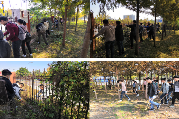 11月1日中午,机械工程学院第49期入党积极分子培训班学员在党总支秘书张程的带领下对凤阳校区西区东侧围墙及水杉林进行了清洁美化。