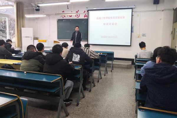 11月25日下午,机械工程学院党总支组织机械与机电专业学生党支部、车辆与工业设计专业学生党支部党员发展对象分别在求知楼B105教室、新知楼A108和学院会议室开展发展对象学习培训讨论。全体发展对象参加讨论,党总支秘书、培训班班主任张程到各讨论组指导讨论。