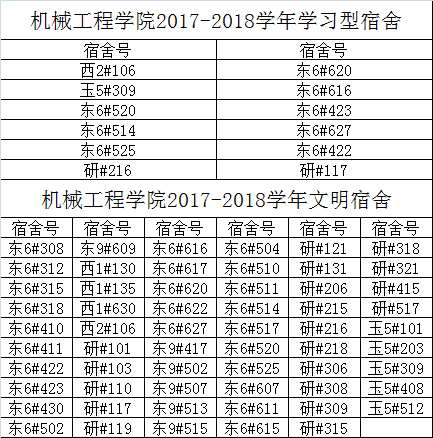 机械工程学院2017-2018学年文明宿舍和学习型宿舍评定结果公示