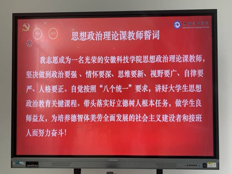 在中国共产党成立100周年之际,为进一步增强思想政治理论课教师的使命感和责任感,牢记习近平总书记殷殷嘱托,落实立德树人根本任务,做到为党育人为国育才。6月30日上午,马克思主义学院在原图书馆202会议室举行思想政治理论课全体教师宣誓仪式,马克思主义学院院长张德化领宣《思想政治理论课教师誓词》。