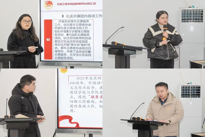 会上,凤阳校区各学院团委负责人围绕学习贯彻党的二十大精神、筑牢青年理想信念、推进创新创业教育、积极拓展第二课堂等内容进行现场述职,龙湖校区各学院团委进行书面述职。现场汇报直奔主题,列数据、盘家底、亮特色,客观总结2022年度共青团工作成绩,查找存在的薄弱环节,并对下一步工作提出了改进措施。校团委书记张聪结合现场述职内容和各学院团委日常工作进行逐一点评。