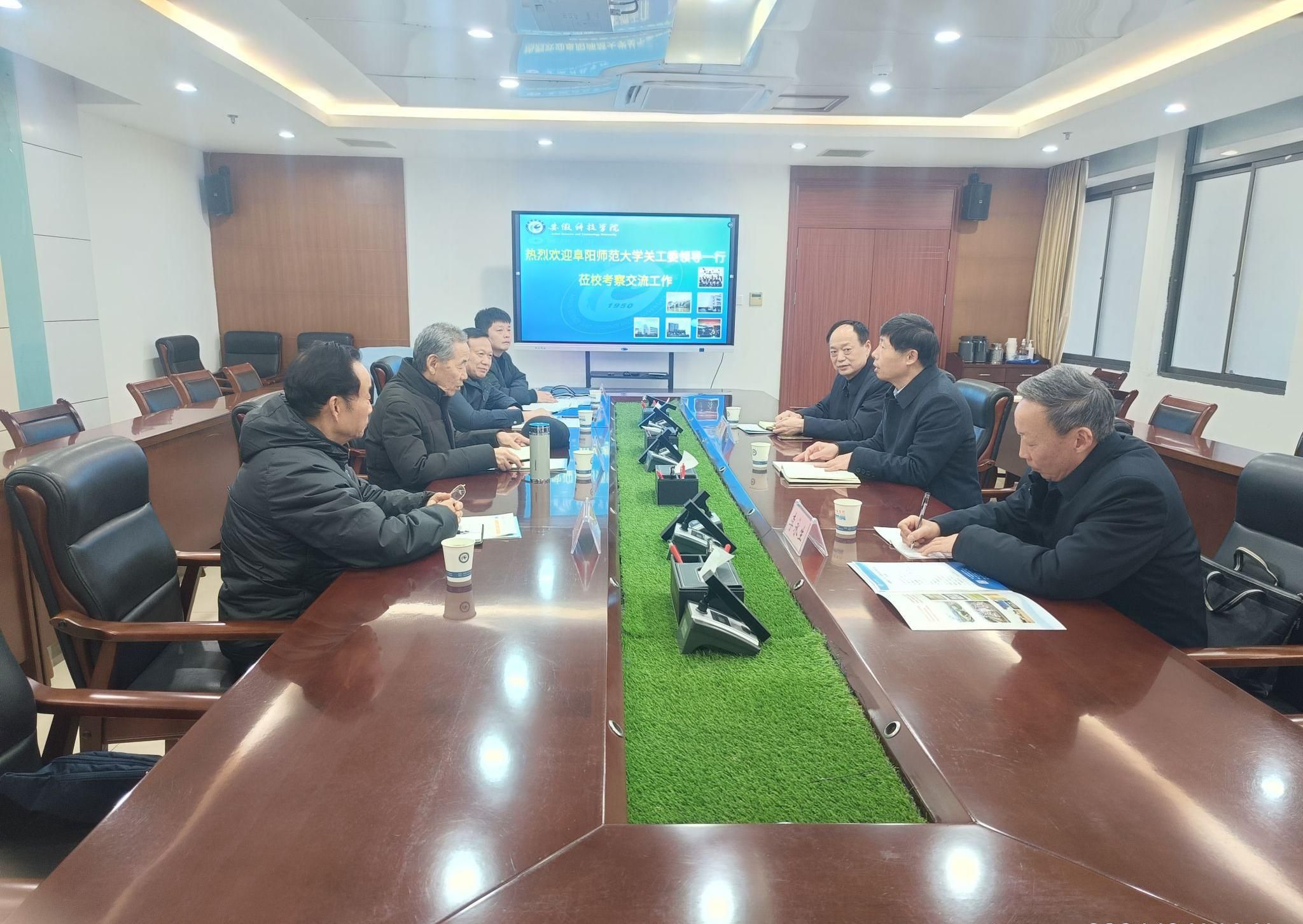 12月11日下午,阜阳师范大学原党委副书记、关工委常务副主任郑禹,关工委副主任郭卫东,离退休工作处处长高奇志,离退休工作处秘书朱佳亮等来威尼斯官网考察交流,校党委书记时伟热情接见了郑禹一行,校关工委秘书长、离退休党总支书记、离退休工作处处长时乾,关工委副秘书长李永生等参加交流。