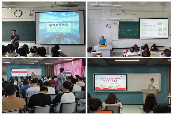 自9月1日起,食品工程学院以课程形式,开展了为期一周的2023级研究生新生入学教育系列活动。期间,先后开展了新生游校园、优秀毕业生报告会、安全健康教育、研究生手册学习、培养方案解读会、科技创新团队学术报告与特色介绍、我与院长面对面、学术报告会、青年博士与学子话成长等系列活动。