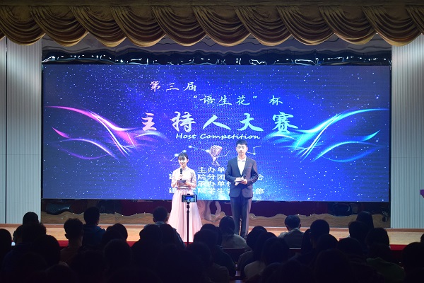 10月28日,建筑学院在龙湖校区敏行楼报告厅举办第三届“语生花”杯主持人大赛决赛。资源与环境学院学生会主席汪旭,管理学院学生会副主席陈庆琳,农学院学生会副主席刘银银,龙湖校区广播台台长王润泽和校菁英主持社周茹担任此次比赛的评委。