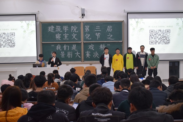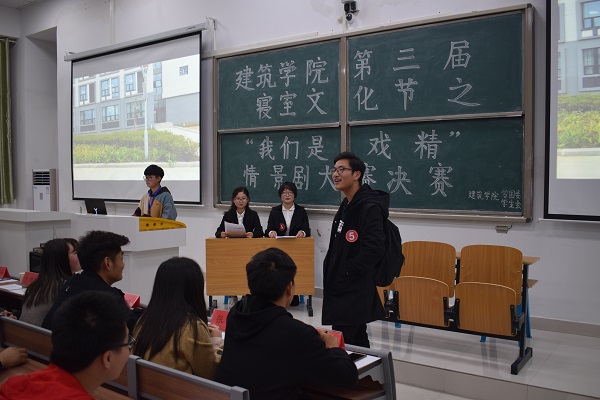 11月25日晚,建筑学院于龙湖校区致知楼A111教室举办了第三届寝室文化节之“我们是戏精”安全情景剧大赛。比赛由校春秋读书社会长王凯、信息与网络工程学院自律部部长宋奥迪、电气与电子工程学院寝室风建设部部长窦仁磊等担任评委。