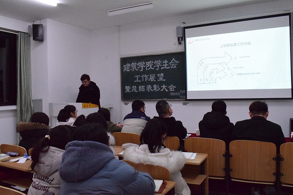 3月3日晚,建筑学院于龙湖校区召开学生会工作展望暨总结表彰大会。建筑学院分团委书记耿广汉、分团委老师吴汉以及建筑学院学生会全体成员参加会议。