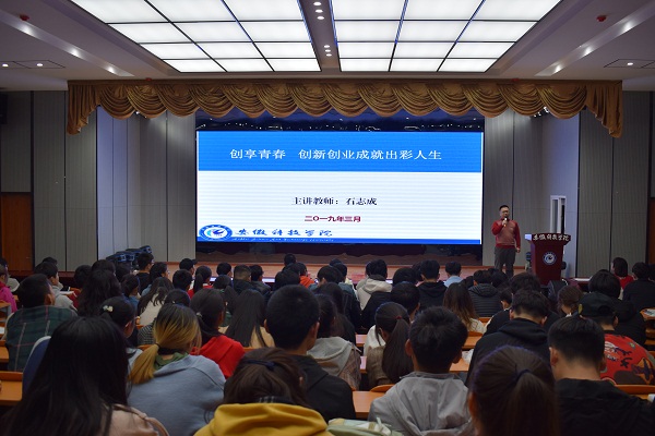 讲座期间,石志成从“为什么要创新创业?创新创业正在做什么?大学生该怎么做?”三个方面作为切入点,向同学们阐述当代大学生创新创业的重要性,并解释了“大数据”,“互联网+”,“大众创业”等相关词汇的含义。石志成精彩生动的演讲让台下听众了解创业内涵,认清未来创业趋势,明确当下应提升自我并锻炼自己的思维模式。在石志成讲师的介绍下,同学们明白学校设立众创空间的意义,也进一步了解了学校的各种创新创业类比赛并产生浓厚兴趣。