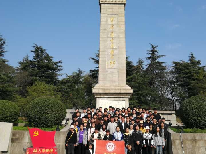 下午,全体成员乘坐公交车到达蚌埠市烈属陵园。大家迈着沉重的步伐,怀着激动而悲伤的心情踏上了漫长的阶梯。当走到了烈士碑下,成员们在碑前低头鞠躬并默哀,表现出对革命英烈的敬意。随后在工作人员的带领下向革命先烈敬献花圈并绕行观瞻烈士纪念碑一周,不禁被英烈们同仇敌忾、浴血奋战的恢弘历史画卷所震撼。活动后期,成员们来到革命英烈纪念馆,馆内对于抗战英雄的大量详细介绍以及战争时代物品的的成列让成员们感受到了革命先烈坚定的信念和勇气,也对今后的学习生活充满信心。带着对革命先烈的敬仰,成员们在革命烈士纪念碑下合影留念后并安全返校。