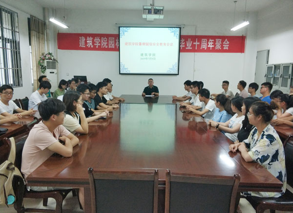 柴敬雨通报了建筑学院2019年学生留宿整体情况、学生集中住宿具体分布、临时寝室长名单,逐条重温了《2019年暑期留校住宿学生安全承诺书》和《防溺水“六不要”安全承诺书》条款。