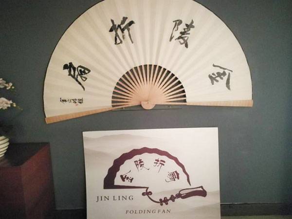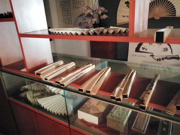 应所长倪世金邀请实践团队进入了成品扇展室。屋子不大却放满了精致折扇,这些折扇由研究所里的师傅们共同完成。从倪世金讲解中得知,金陵折扇是中国南京地区传统手工艺品,以竹木做扇骨,用韧纸或绫绢做扇面。制作过程共分制扇骨、做扇面、穿扇面三大工序。2009年,金陵折扇列入《江苏省非物质文化遗产名录》。