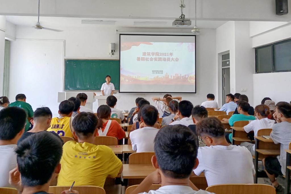 为深入学习贯彻习近平总书记在庆祝中国共产党成立100周年大会上的重要讲话精神,大力弘扬志愿服务精神,以实际行动践行社会主义核心价值观,在奉献中实现自我价值。7月2日,建筑学院在致知楼A404召开2021年暑期“三下乡”社会实践动员会。学院团委学生干部,学生会、易班工作站、艺术体育中心负责人以及非毕业班团支部书记、团支部副书记参加了此次会议。会议由建筑学院团委书记沈德艳主持。