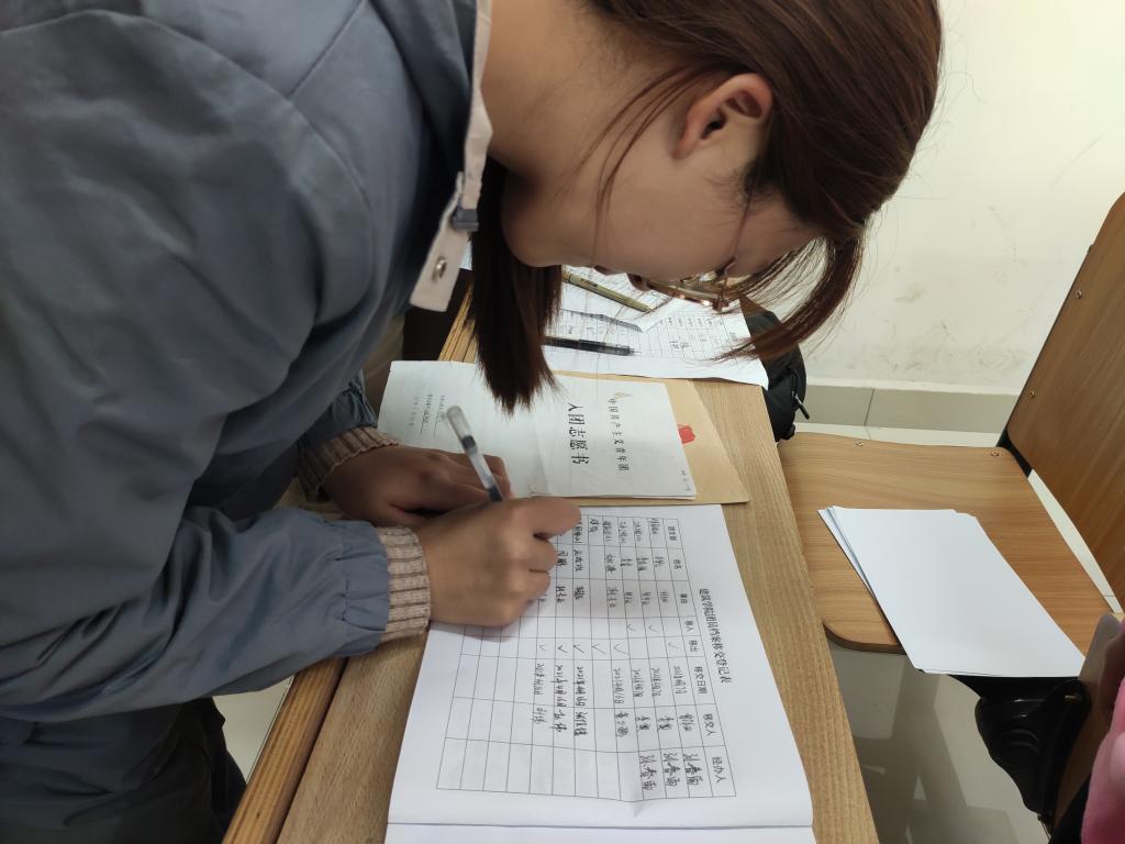 现场,团支部书记对团员档案的入团申请书、入团志愿书、团员证、介绍信等材料是否齐全、填写内容和格式是否规范进行检查、登记。