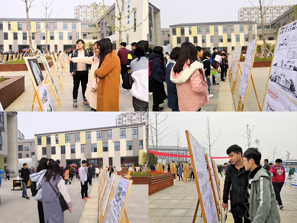 11月21日,建筑学院第三届建筑文化节优秀学生作品展在龙湖校区食堂前小广场举行。校党委副书记韦文联出席本次活动。建筑学院党总支书记傅友福、院长张远兵,龙湖校区综合管理办公室副主任姚文均陪同观看展览。本次作品展分为设计基础展区、设计构成展区、古建筑测绘、服务社会展区、毕业设计展区、校外实习作品展区、快题设计展区、建筑模型展区、现场手绘展区,共百余件作品展出。