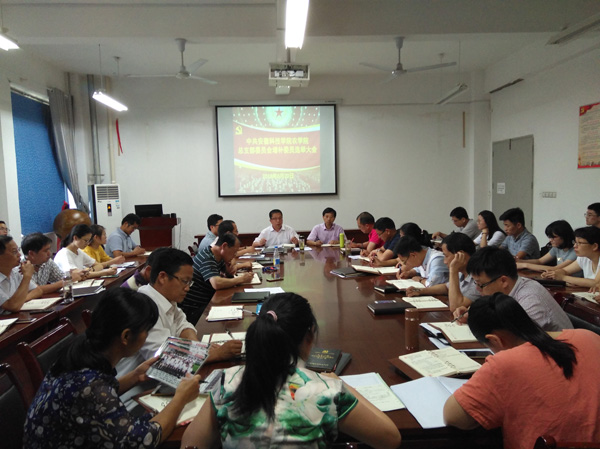 6月20日下午,农学院在学院会议室召开党员大会,学院党总支全体委员、所属六个党支部书记和全体党员参加会议。会议由党总支书记何世潮主持。