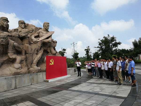 党员们首先来到霍山革命纪念馆,在讲解员的带领下,学习了“六霍”为代表的99位知名烈士的生平事迹;聆听了安徽省第一次民团起义——“诸佛庵民团起义”、安徽省第一支正规红军——“中国工农红军第11军第33师”、安徽省第一个县级苏维埃政府——“霍山县苏维埃政府”和安徽省第一个也是唯一一个“全境赤化县”的建立等革命事迹,透过一幅幅革命先烈为革命前仆后继的图片、一件件生动真实的革命遗物,听讲解员对过去那段峥嵘革命岁月的讲解,大家纷纷被先烈身上坚定不移的革命信念所感染,使大家受到了一次灵魂的红色洗礼。随后,全体党员瞻仰了英烈墙与烈士墓,在烈士雕塑群前庄严站立,面对党旗,重温入党誓词。