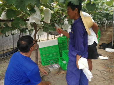 到达安徽盛农农业集团有限公司后,实践团成员开展了一系列实践学习。首先参观了葡萄园,参观了解之后,同学们与生产队长进行深切交谈,学习了葡萄从种到收的整个管理过程。在学习过程中,陈鹏飞同学发现葡萄园采用原生态种植模式,杂草的处理花费了大量的人力物力,提出了采用“葡萄树—鹅”的种养结合模式。鹅能够吃掉葡萄果园里面的杂草,鹅粪又能够为果树提供肥料,不仅节约了人力物力,对果园的空间利用率也得到很大的提升,得到队长的赞扬认可。