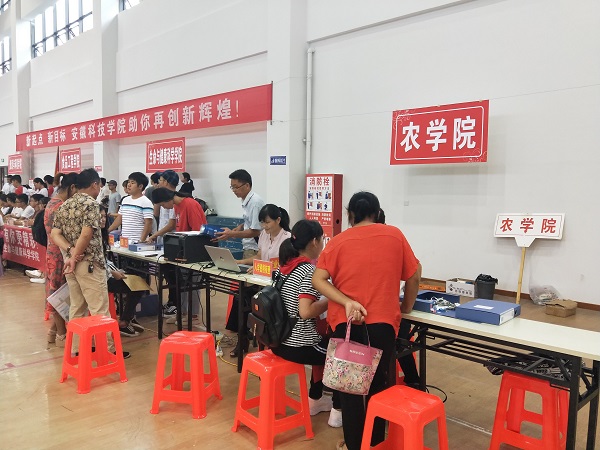 九月,安科的鲜花盛开,又是一届新生来。9月6日上午农学院迎来2018年第一拨“新人”。学校体育馆迎新现场,农学院学生会、金禾创新创业中心、社团联合会、班主任助理等志愿者及全体辅导员班主任齐聚一堂,热情欢迎新同学的到来。