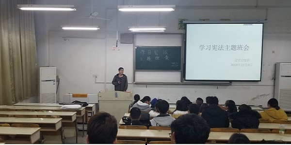 2018年12月4日,国家第五个国家宪法日。设施农业科学与工程172班在求知楼104开展“学习宪法”主题班会,班长洪杰主持会议,班级全体同学参加。