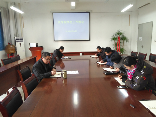 新学期开学伊始,2月24日上午,农学院在学院会议室召开辅导员工作会议,党总支书记何世潮出席会议,全院辅导员参加,学院党总支副书记沈树周主持会议。