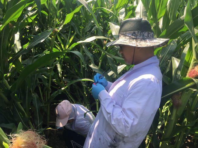 在李从锋老师的指导与作物所研究生带领下,吴法轩、崔静斌系统学习了光合测定系统、荧光仪、光谱仪等仪器的基本原理与使用方法,了解了光照、氮肥、种植密度等环境栽培因素对玉米生长发育的影响。同时同学们也深刻认识到在农业田间试验中,要严格操作规程,注意实验每一个环节,这样才能保证田间取样与数据收集的代表性、准确性。