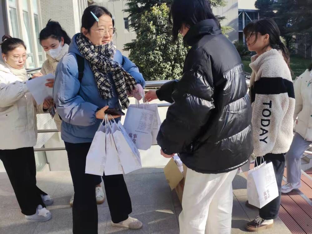 杜士凤、李沙娜亲切问候在场学生,对于他们长久以来的坚持与努力给予支持与鼓励,并为每一位考研学子送上精心准备的小礼品。在礼品分发的过程中,他们悉心询问同学们的复习情况和心理状态,并给予针对性意见。杜士凤希望同学们能够信心满满地走入考场,期盼同学们取得优异成绩,实现自己的考研梦想。