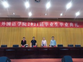 青春启航,梦想飞扬。2021年5月31日下午,外国语学院在新图书馆二楼报告厅举行2021届毕业生毕业典礼,外国语学院院长陈德用、党委书记蔡为青、副院长刘萍、党委副书记张海亮出席毕业典礼。学院部分教师代表、家长代表何全体毕业生一同参会,典礼由蔡为青主持。