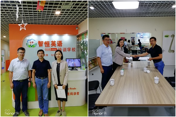 为进一步了解市场人才需求,拓展毕业生实习与就业基地,加强校企双方的交流与合作,提高人才培养质量,对标学校硕士点创建工作,8月26日上午,外国语学院院长陈德用、英语教研室副主任吴远青赴蚌埠智恒英语培训学校参观考察,与该培训学校达成了合作意向,签署了“大学生实习与就业基地”协议。