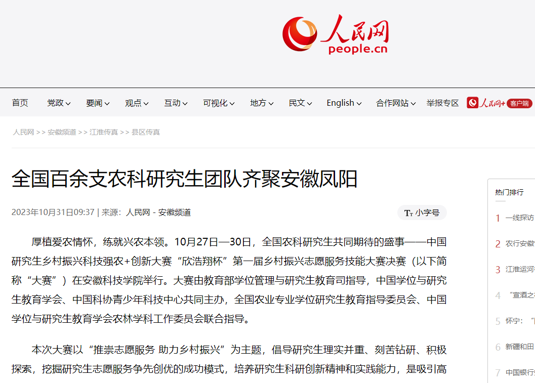 本次大赛作为助力乡村振兴的重要举措和生动实践,自开赛以来受到多家媒体的关注和支持。中央广电总台国际在线、新华网、新华社客户端、人民网、央广网、中国青年报、中国新闻网、中华网、中国网、中安在线、新民晚报、新华丝路、新浪网、凤凰网、澎湃新闻、香港经济导报、安徽日报、安徽新闻联播、安青网、蚌埠日报、中安在线蚌埠频道、蚌埠新闻网等多家媒体对37266威尼斯官网承办的这一赛事进行了报道。